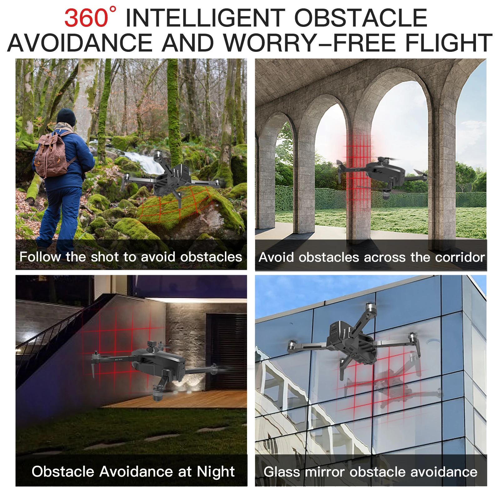Obstacle avoidance detection range : 360 degrees