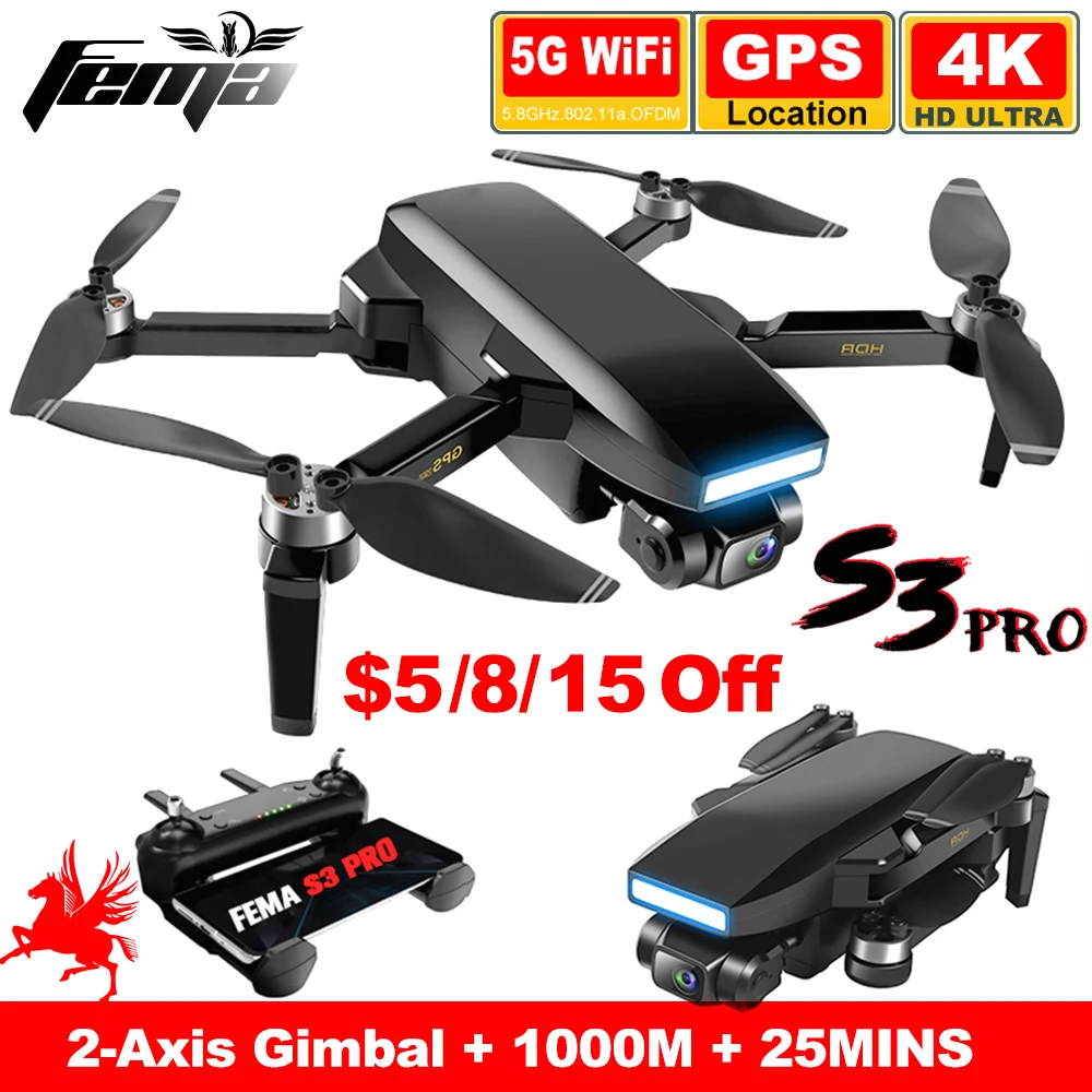 FEMA S3 Pro GPS Drone With Camera 4k HD 5G WiFi dron Brushless FPV drone 25mins Long Distance 1km professional quadcopter