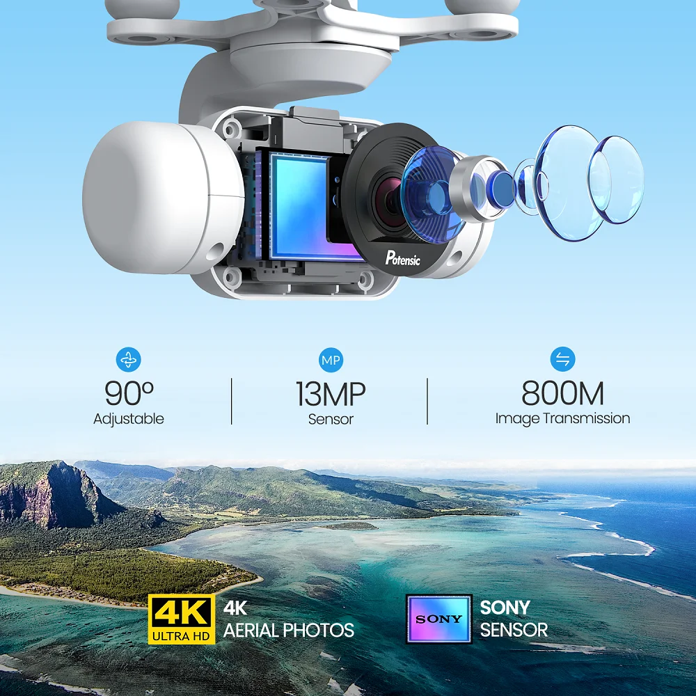 Potensic Dreamer Drone with 4K 13MP SONY Sensor Camera GPS RC Quadcopter Long Fly Time Brushless Motors Professional Plane